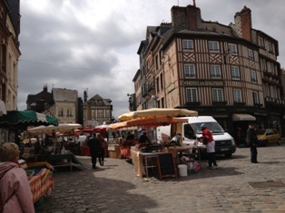 Nous commençons la promenade par Honfleur, jour de marché |