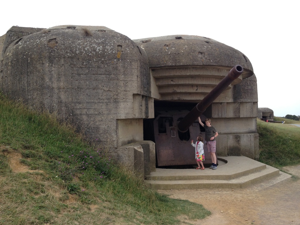 Bien que souvent de passage dans la région, nous n'avions pas encore emmené les enfants voir les plages du débarquement. Je comble cette lacune, avec l'aide de Tatoune qui nous a rejoint pour l'occasion. Alice, quant à elle, est à Perpignang pendant ce temps.