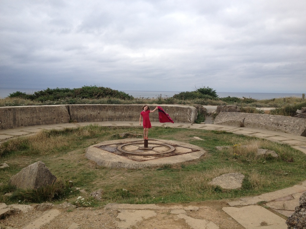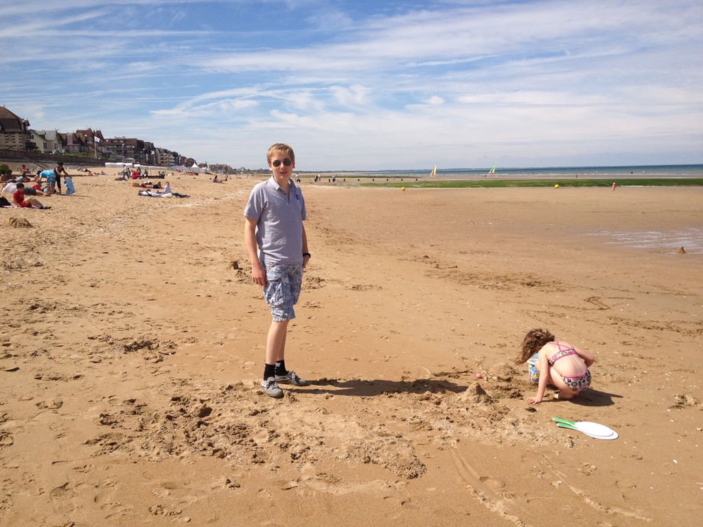Bien que souvent de passage dans la région, nous n'avions pas encore emmené les enfants voir les plages du débarquement. Je comble cette lacune, avec l'aide de Tatoune qui nous a rejoint pour l'occasion. Alice, quant à elle, est à Perpignang pendant ce temps.