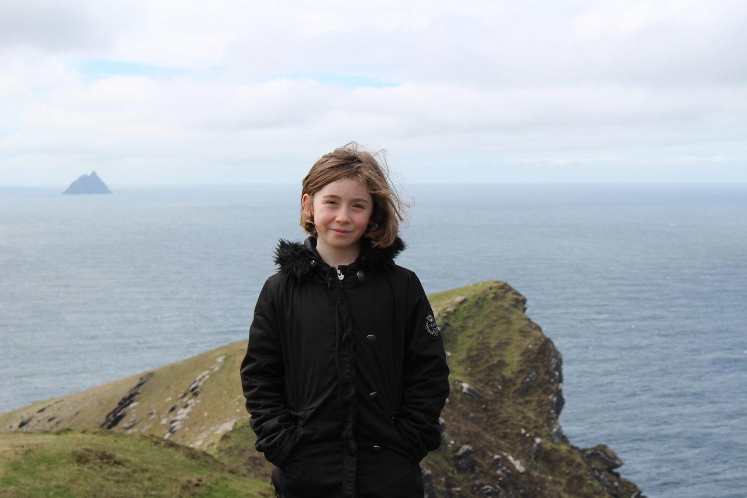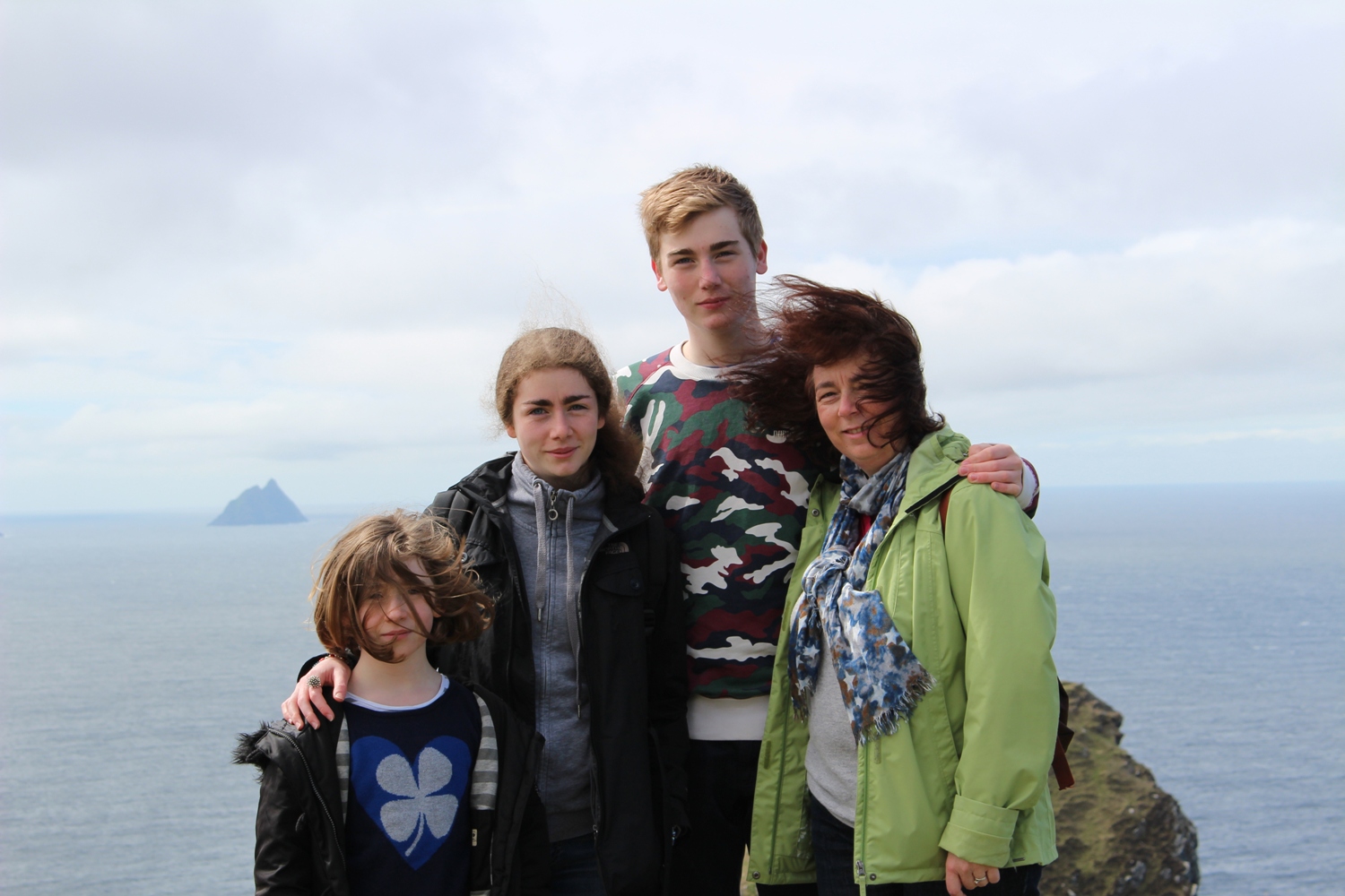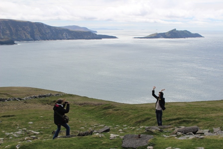Au loin l'une des iles Skellig. Notez comme nous formons une silhouette semblable !