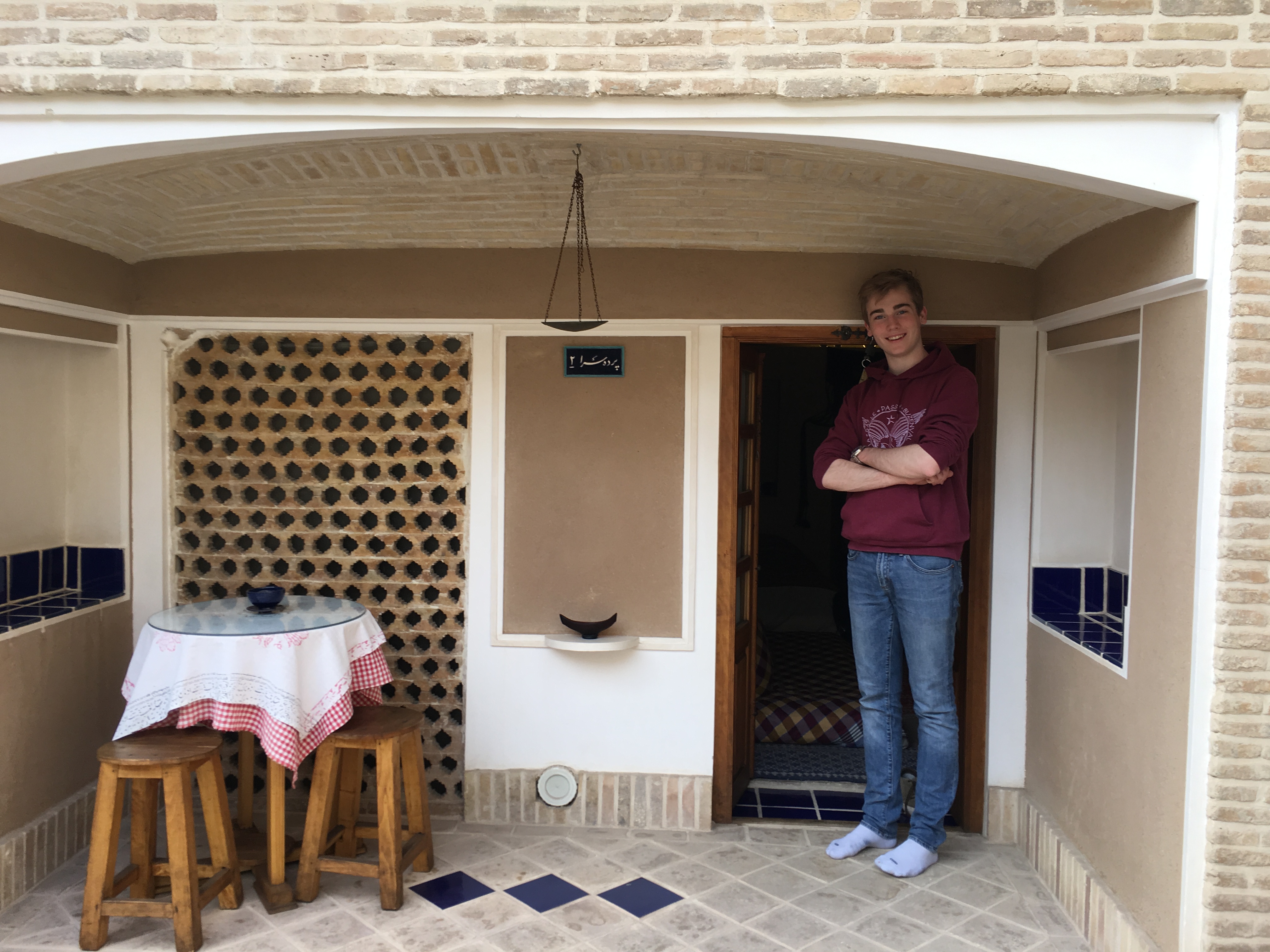Et nous voici à l'hôtel Kahn-e Irani. Pierre-Louis monte la garde