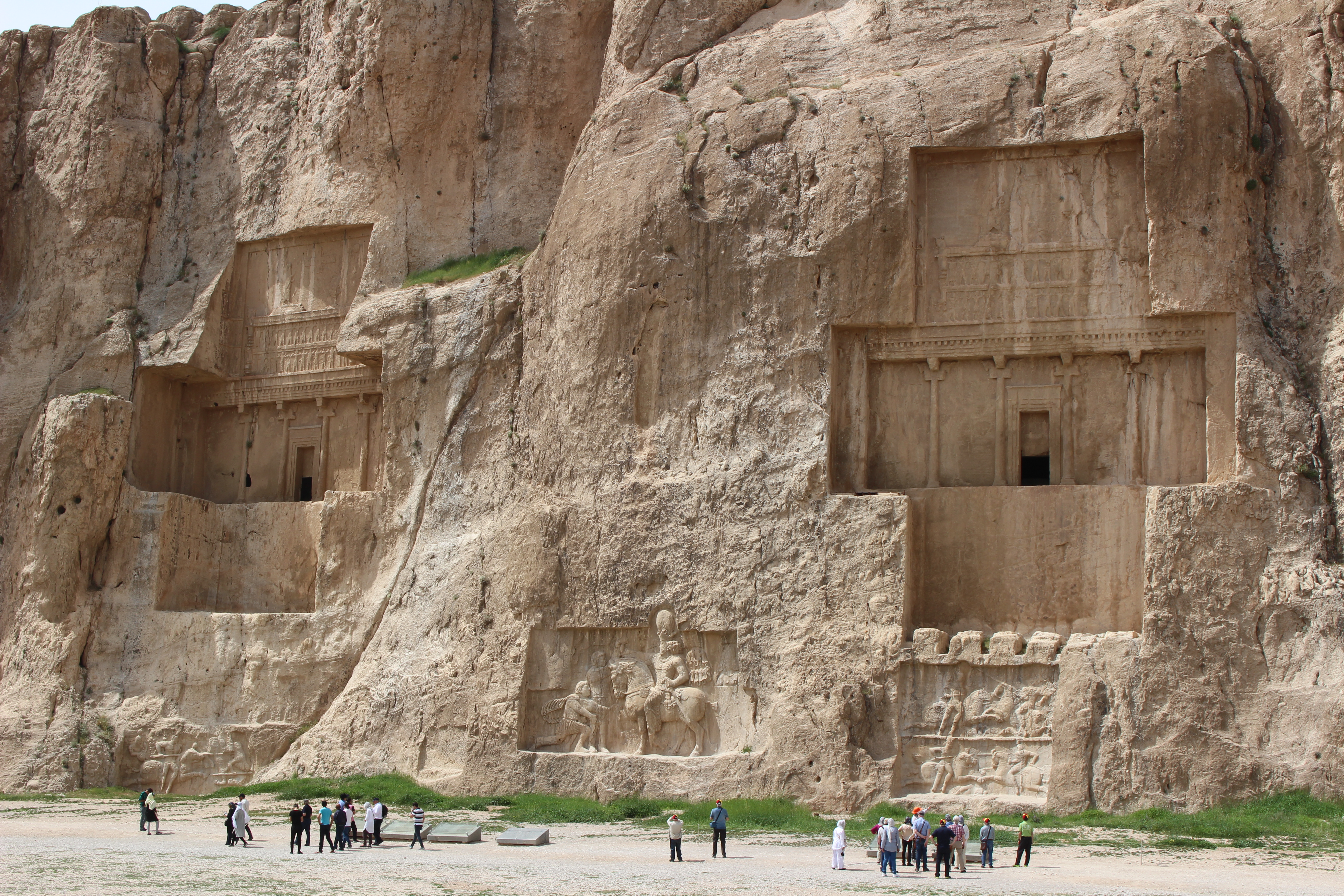 Quatre tombes sont creusées dans la roche : Darius II, Artaxerxes I, Darius I et Xerxes I