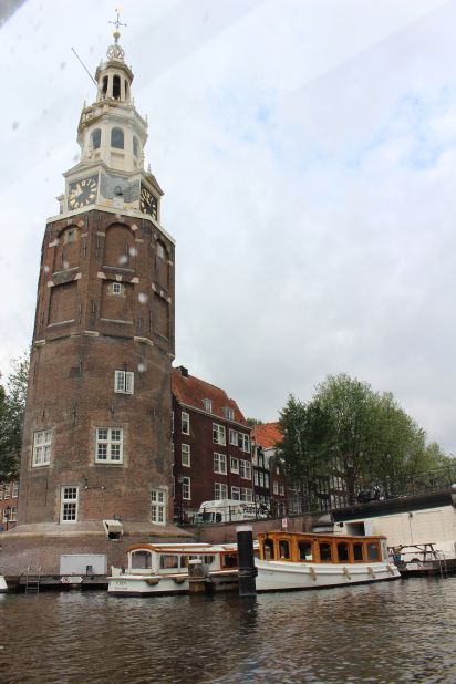 La tour Montelbaanstoren construite en 1516 qui faisait partie du