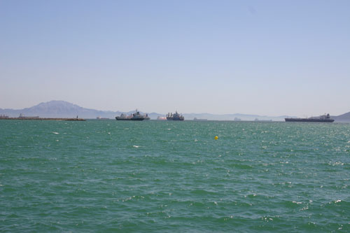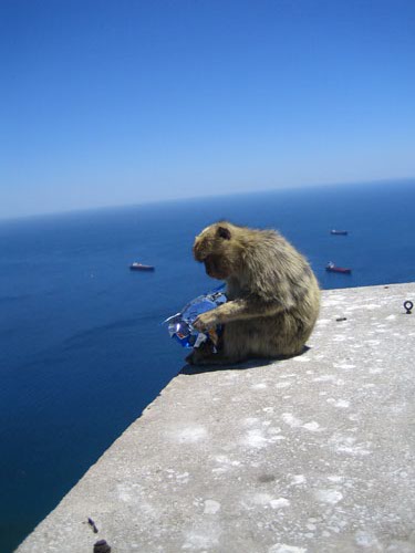 Samedi 30 juillet : excursion à Gibraltar. Vue du rocher de Gibraltar sur la baie d'Algeciras. Là encore, vous ne verrez pas le meilleur qui a été zappé par l'appareil .. Les fameux singes de Gibraltar, derniers exemplaires sauvages. Selon la légende les Gibraltariens devront quitter le rocher le jour où les singes l'auront déserté Du port d'Algeciras partent les navettes pour Tanger et Ceutat. C'est l'un des plus importants d'Espagne avec Bilbao