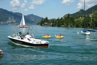 Pour fêter cela, séance de bouée tractée sur le lac pour Alice