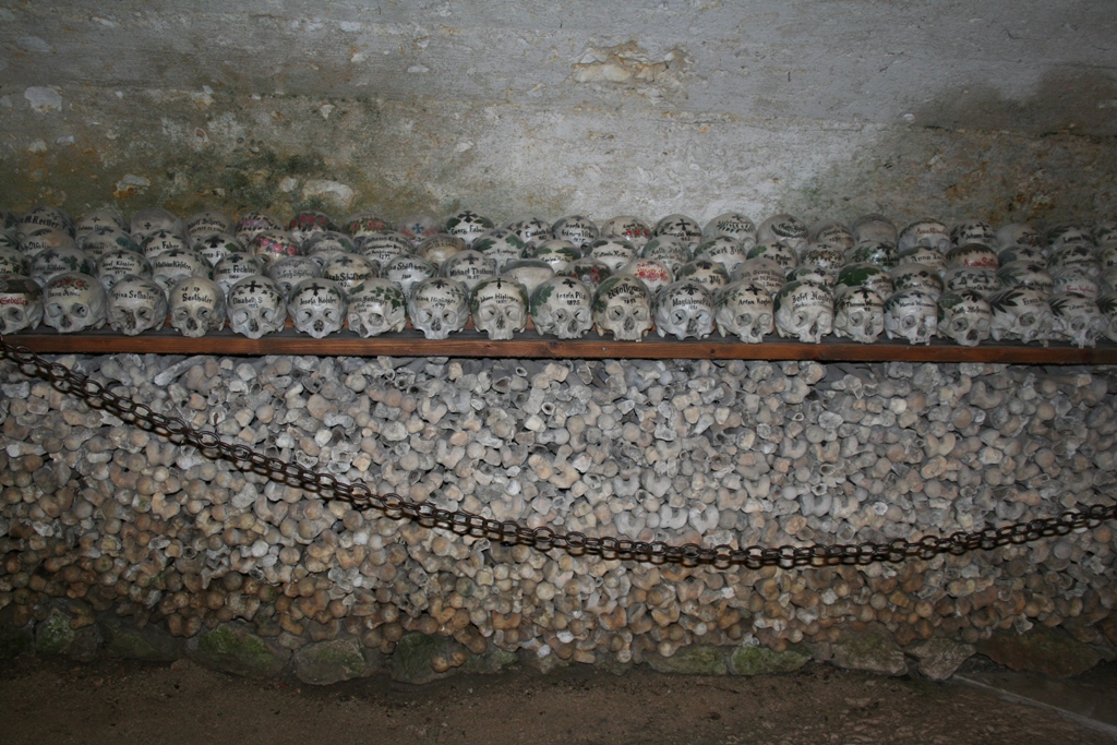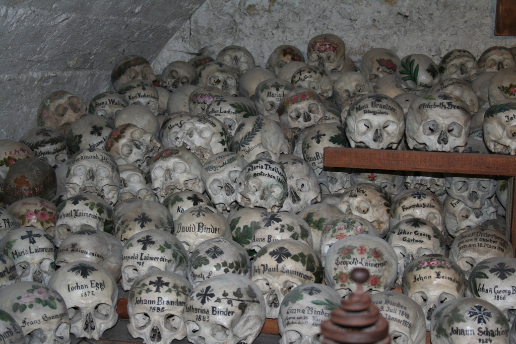 L'ossuaire d'Hallstatt abrite quelques 1200 crânes décorés. |