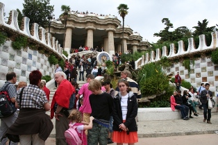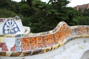 Le parc Güell, aménagé par Gaudi sur la commande du comte Güell, devait être une cité-jardin  La salamandre, symbole du parc, recouverte de trencadis