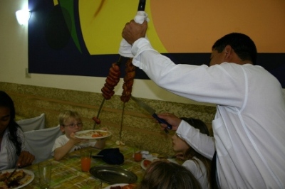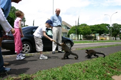 Déjeuner à la Churrascaria.Pierre-Louis apprécie la viande brésilienne et il refuse rarement un passage .... La cathédrale de Maringa. Pierre-Louis s'y est perdu et c'est tremblant et demandant aux passants "Do you speak english" que nos amis l'ont retrouvé ! Arbre à pustules ! Ces fruits se dégustent et ont un goût sucré qui n'est pas désagréable.