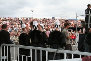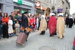 Maman réussit à me traîner à la fête folklorique de Guingamp ! A l'occasion de la Saint Loup, toutes sortes de groupes bretons défilent dans la ville ....