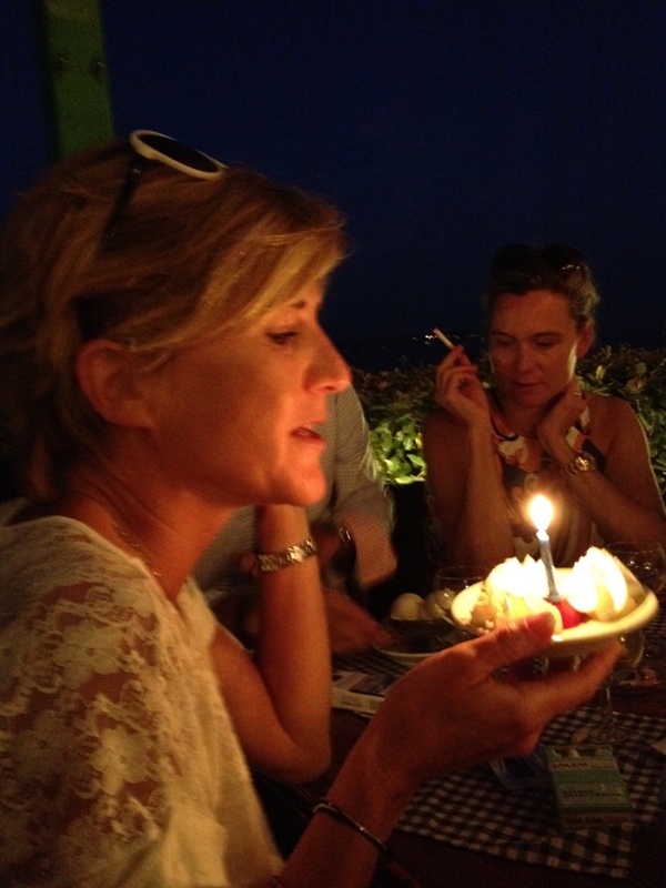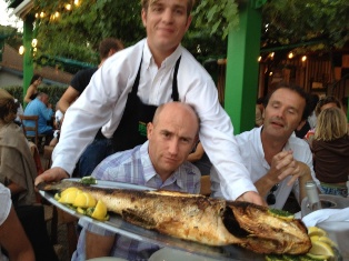 Dîner d'anniversaire d'Anne-Christine chez Hortense avec une loubine (bar) pêchée du jour.