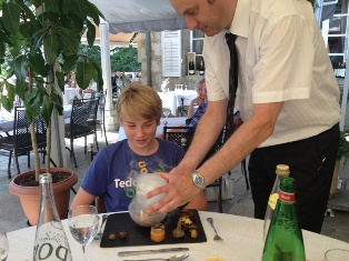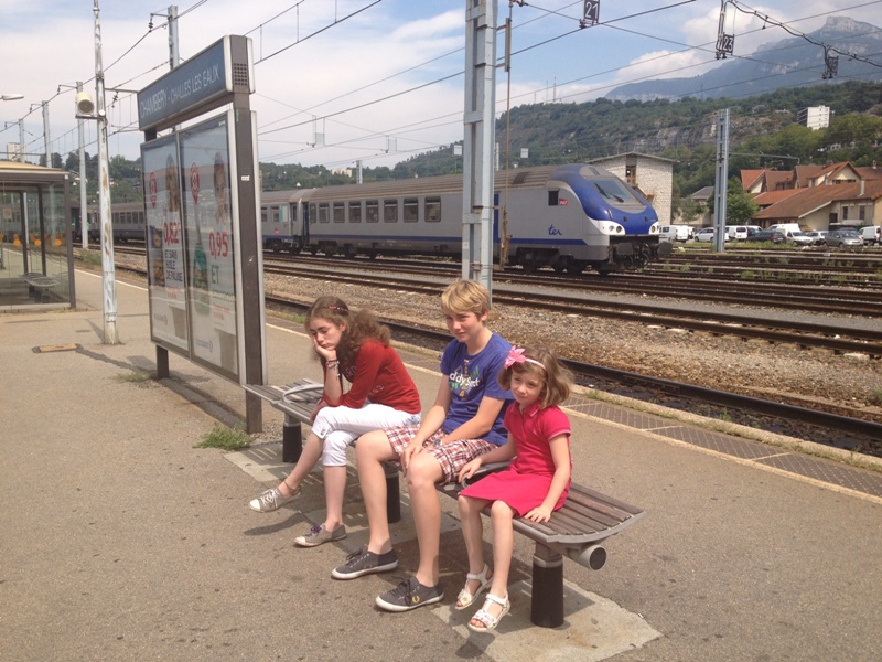 Dimanche 12 août : sur le quai de la gare en attendant Dhun. Déjeuner improvisé chez Florian, au château des Comtes de Challes.