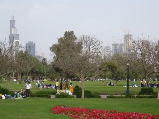le parc Safa. Au fond un champ de grues. |