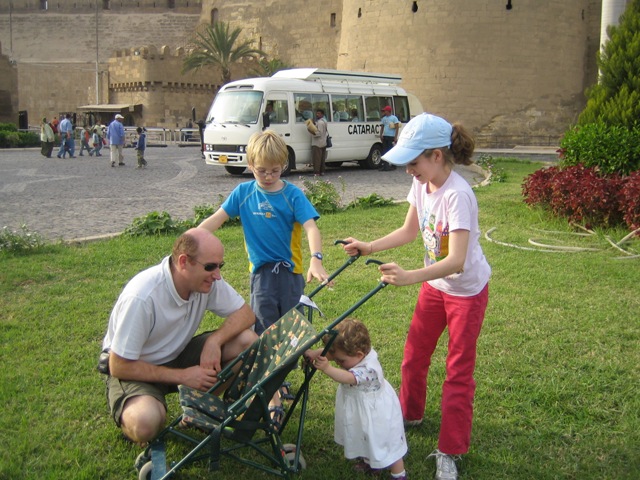 Le 1er novembre 2006, la famille Etienne, agrandie pour l'occasion avec Adèle la filleule de Bruno, part en exploration au Caire .... Premier voyage en Afrique du Nord pour Alice et Pierre-Louis qui ne savent pas encore quel dépaysement les attend. Premier voyage tout court pour notre Madeleinette qui aura un succès fou auprès des egyptiens. Mais pas sûr qu'elle en garde un grand souvenir .....