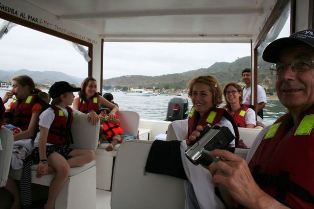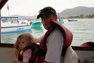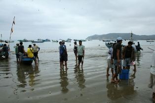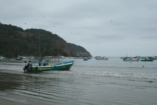 | Les pêcheurs sont rentrés et la vente bat son plein | Départ pour les Galapagos des fauchés (dixit le guide d'Olivia !) : l'Isla Plata | |