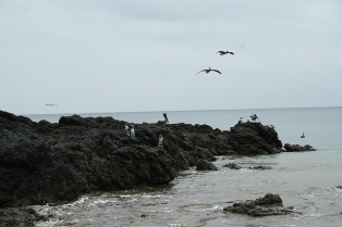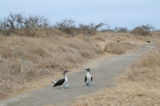 | Arrivée sur Isla Plata et première rencontre avec des fous aux pieds bleus. | Nous traversons l'île habitée par les seuls oiseaux. | |