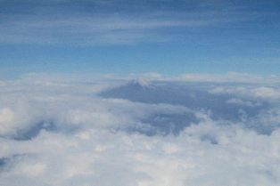 Jeudi 7 août : retour sur Quito. Nous passons devant le Chimborazo qui surpasse les nuages.