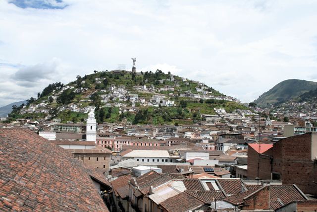 Vue sur le panecillo (le petit pain) et sur la Vierge de Quito