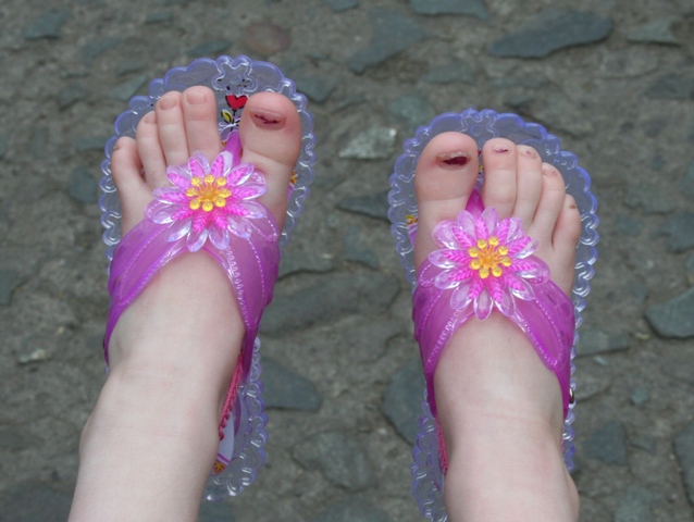 fière de ses pieds en tongs de fête !