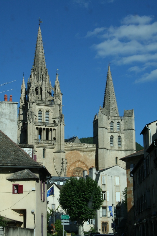 3 août : nous quittons la région pour rejoindre l'Ardèche. On aperçoit la cathédrale de Rodez.