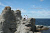 Nous fêtons les deux ans de Nina Tout le monde est de sortie. Impossible de trouver une table Vendredi 3 juillet, nous partons pour Gotland Nina, en attendant le bateau Madeleine et Pierre-Louis chevauchent les béliers de Gotland Les murailles de Visby, construites à partir de la fin du XIIIeme Une autre ruine que je suis bien incapable de vous nommer... La cathédrale consacrée en 1225. Visby, la ville des roses et des ruines Samedi 4 juillet, nous sommes au parc de Pippi Dans l'après-midi je roule dans le sud de l'île L'église de Fröjel (XIIe-XIIIe siècle) Le sablier garantit que le sermon ne sera pas trop long L'église d'Hablingbo et le portail du milieu XIVe. De retour au parc d'attraction. Nina ne goûte pas la promenade en pédalo. Dimanche 5 juillet : bac vers Farö avec Asa et Jan Sur l'île de Farö, nous explorons les raukar, aiguilles rocheuses de calcaire Alice et Pierre-Louis s'en donnent à coeur joie. Madeleine participe à la grimpette générale La route le long de la côte Un raukar particulièrement impressionant.. Ce rocher surveille les flots Comme un moulin sans ailes ... Les Suédois diraient, un moulin norvégien... On se croirait aux Seychelles, à quelques degrés près ... Madeleine a encore des traces de varicelle Nina garde ses chaussures pour ne pas risquer de toucher le sable En attendant le bac : une superbe luminosité Lundi : temps de cochon, nous visitons le musée Nous ne rejouerons pas Titanic ce soir. Mardi 7 juillet à Gröna Lund.
