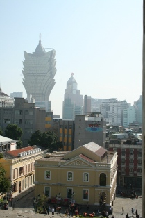 Au dessus des toits, le casino Lisboa domine la ville.