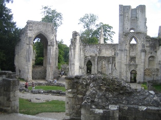 | L'histoire de l'abbaye de Jumièges, située dans une boucle de la Seine, commence en 934, après l'incendie par les Vikings en 841 du monastère carolingien. | ||