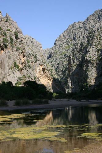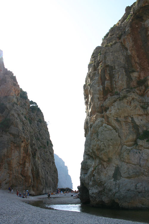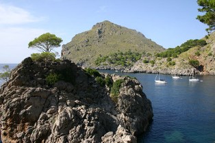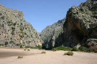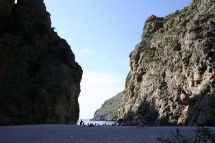 Le site de Sa Colobra, avec sa plage encaissée entre de hautes falaises.