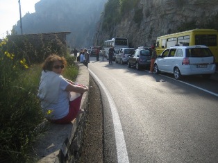 Ravello, villa Rufolo Le retour sur Sorrente est perturbé par un accident entre deux mobylettes Coincés !