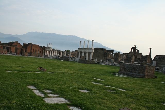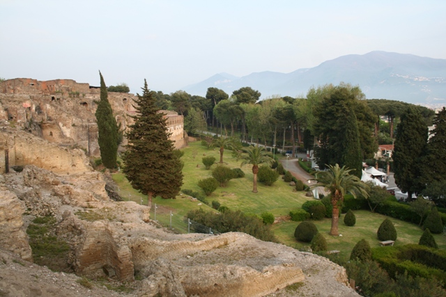 Dernière vue du forum Les rempars de Pompéï Vue sur la baie sorrentine au coucher de soleil