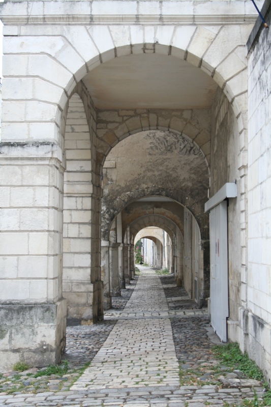 Rue de l'Escale à la Rochelle, encore pavée de galets ronds. Ces