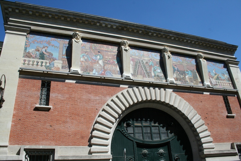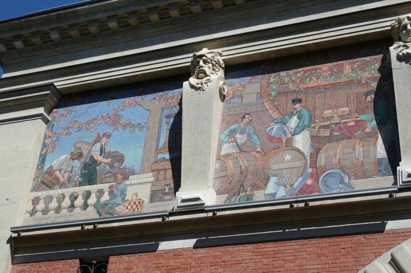 La façade présente les étapes de la fabrication du champagne |