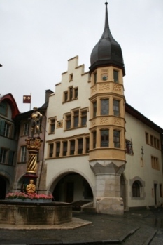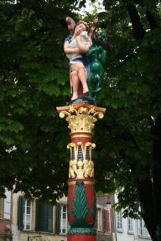 | L'église gothique date du XVème siècle. | Les colonnes de la chambre d'hôtel ! | |