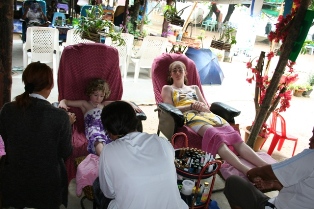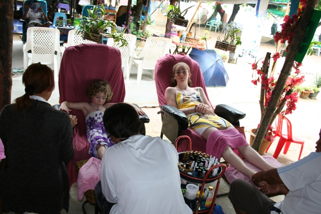 Manucure et pédicure pour Madeleine. Massage des pieds pour Alice