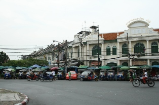 File de tuk-tuk, devant le palais |