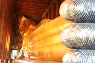 Le Bouddha couché, long de 46m, haut de 15m, est entièrement